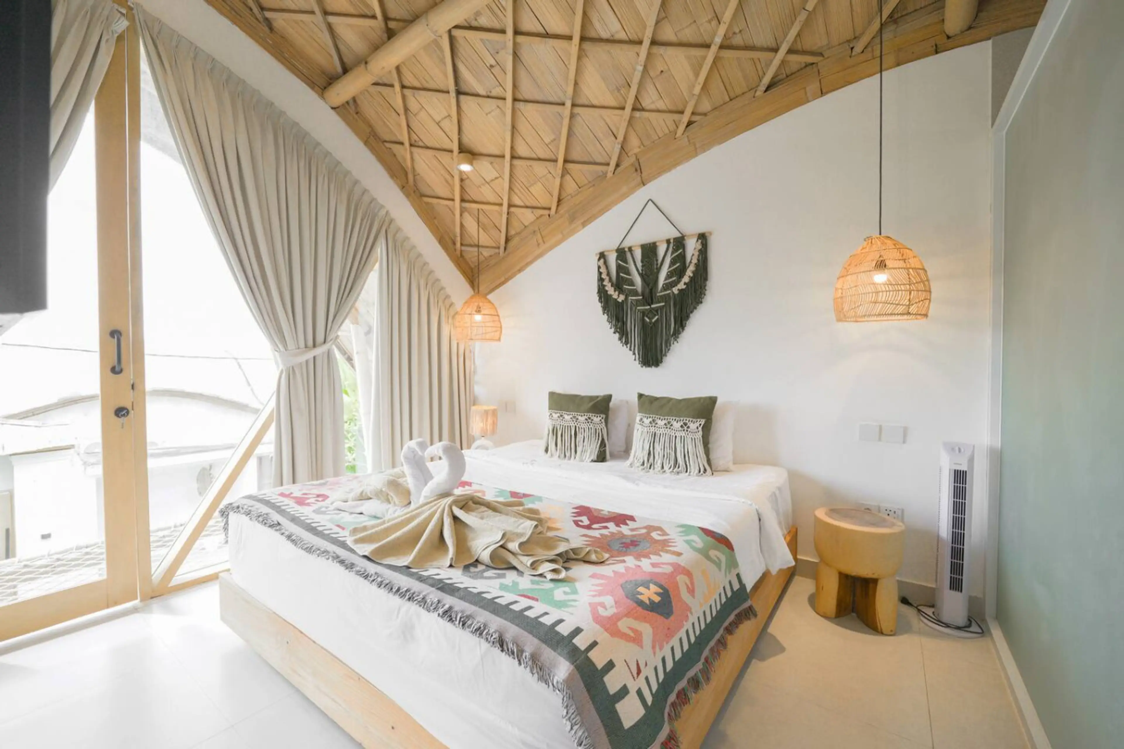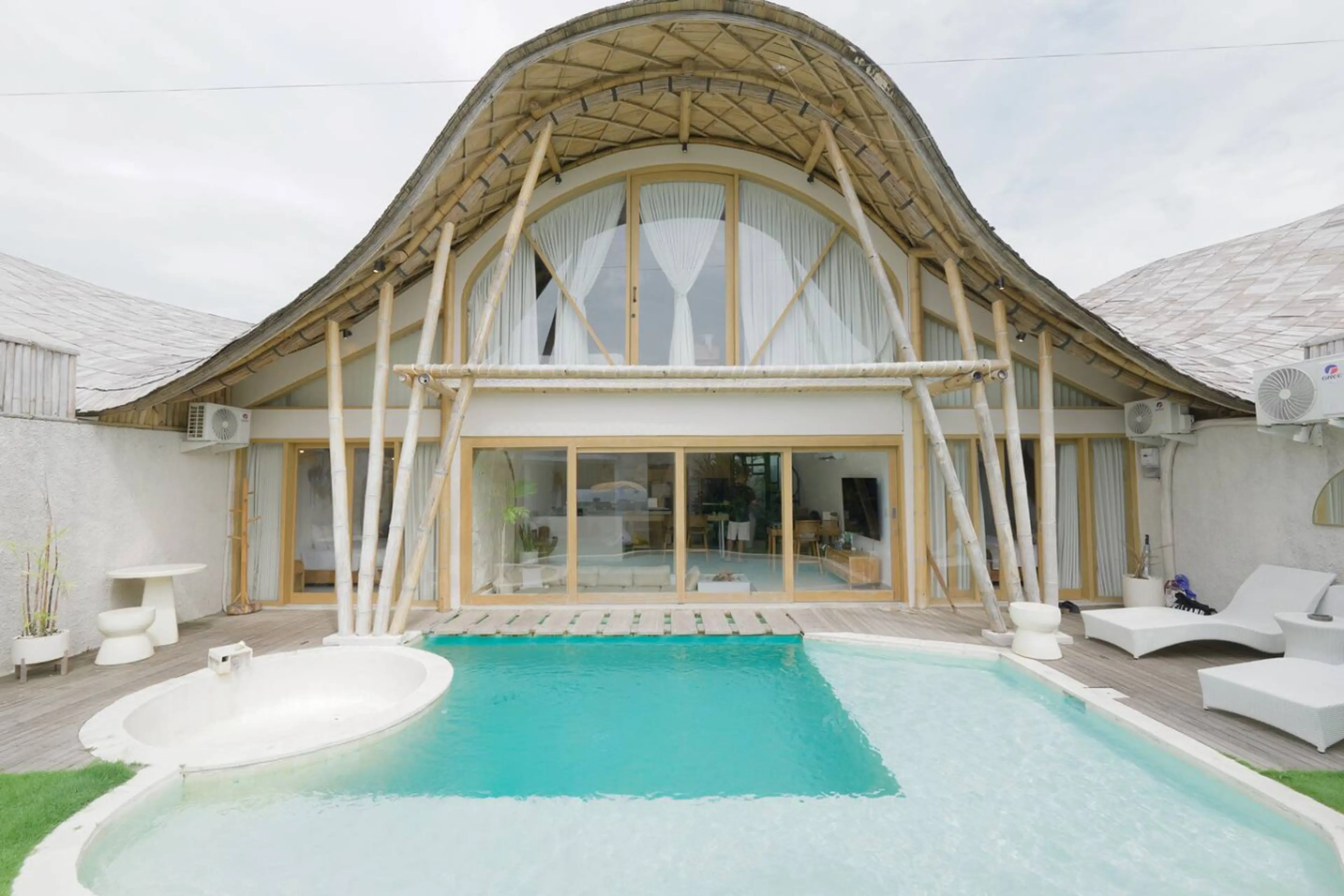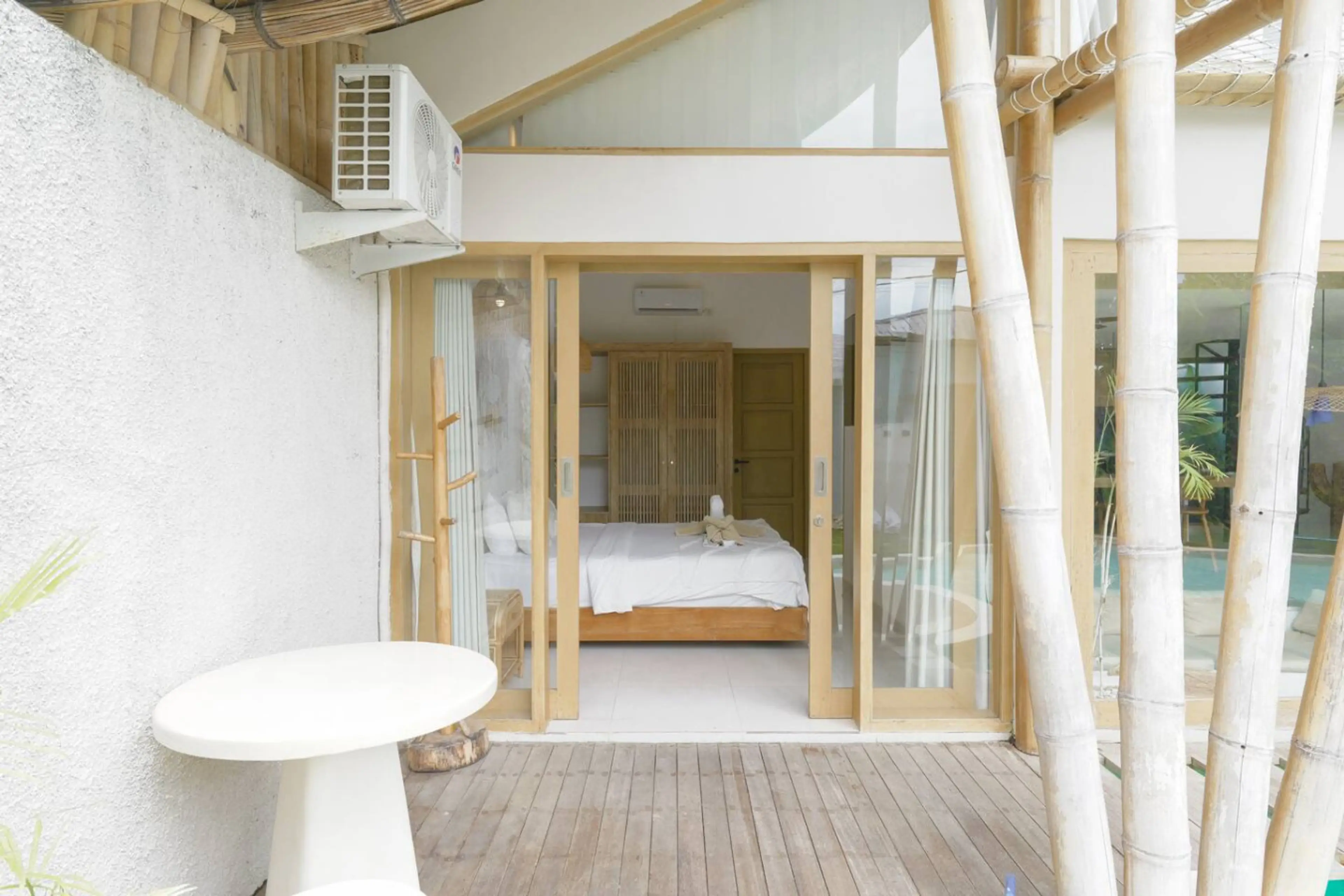 A serene bamboo retreat with a private pool, designed for comfort and style. This beautiful two-story villa features an open living space, natural interiors, and large glass doors that bring the outdoors in. Enjoy relaxing by the pool, unwinding in cozy living areas, and sleeping peacefully in a bri...
