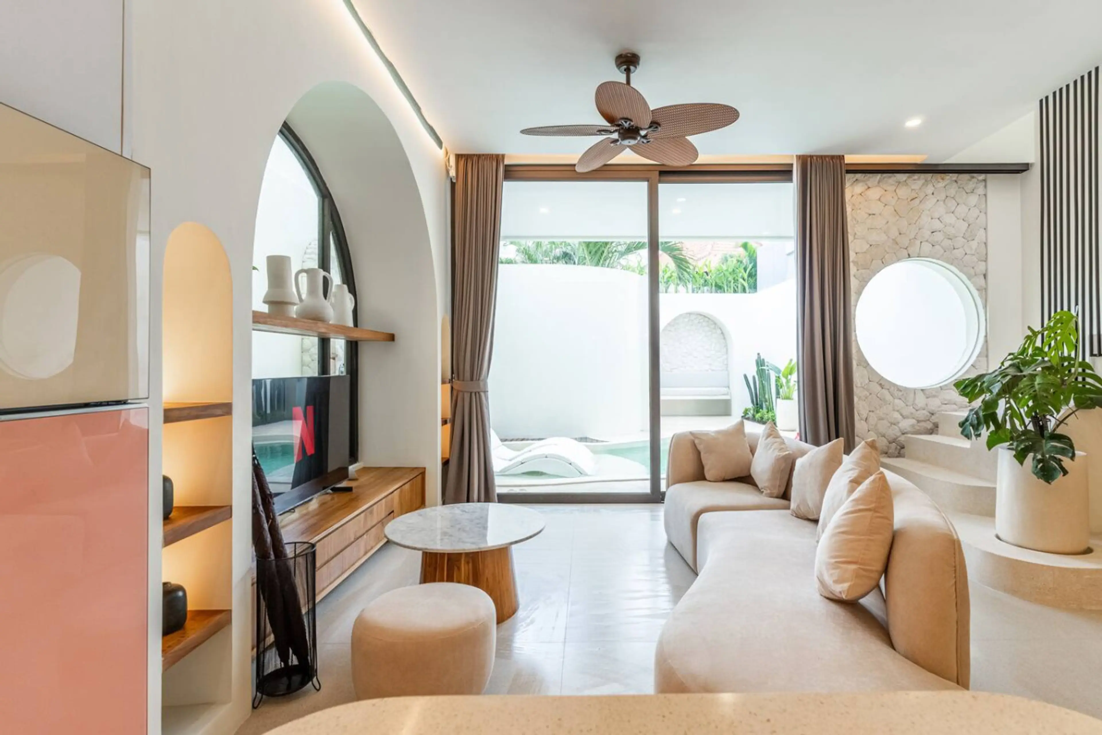 Elio Villas Batu Bolong is a complex of 7 luxurious smart Mediterranean-inspired villas in the heart of Canggu. Enjoy premium amenities including filtered water system, RO drinking water, Bose sound system, Dyson hairdryer, washer dryer, and Alexa-controlled curtains and lighting. Walk to cafes, s...